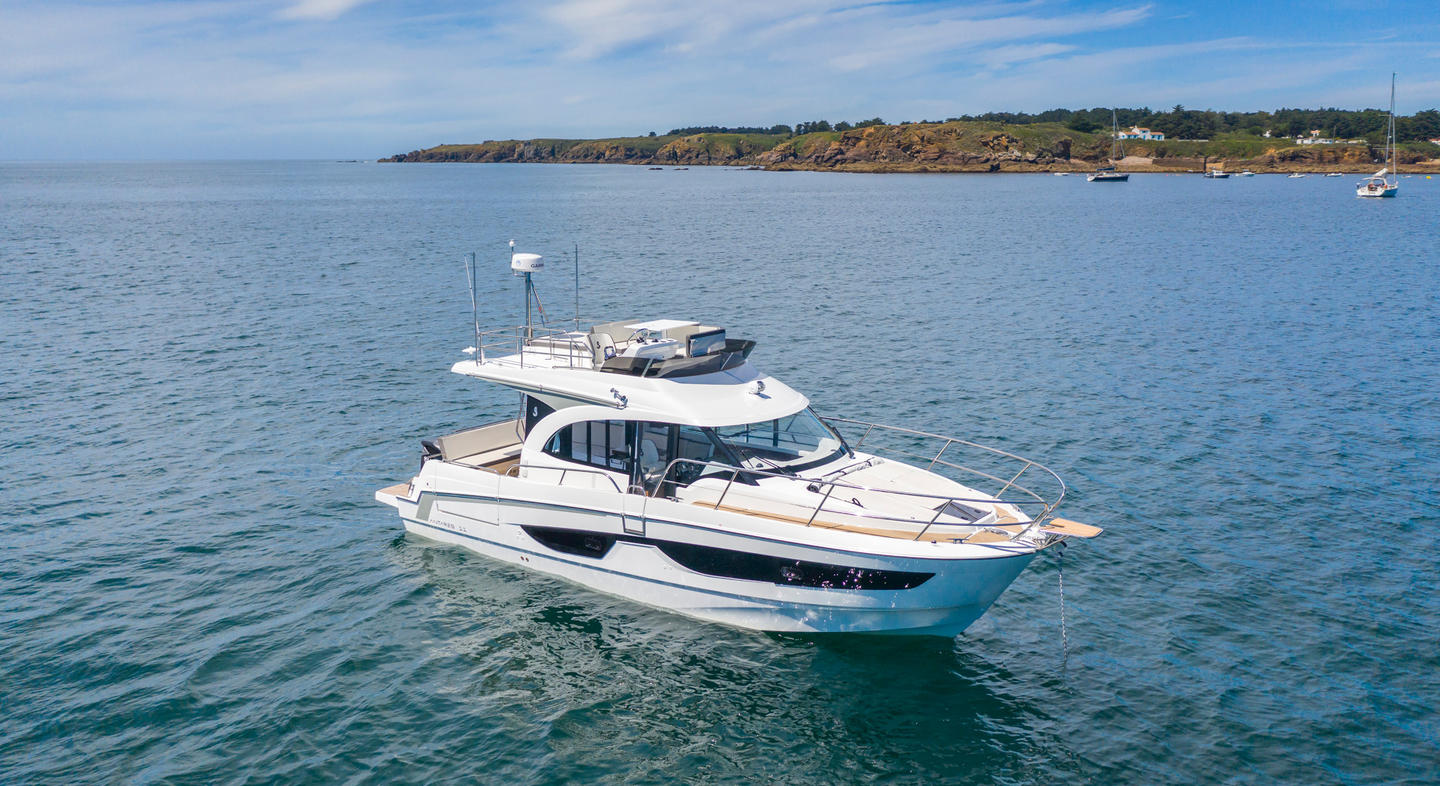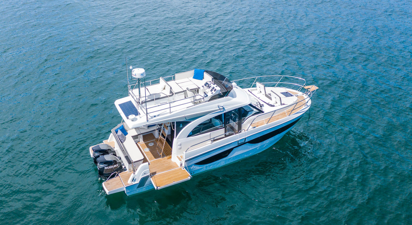 Natural light and cruising comfort characterize this large weekender. The double master cabin with en-suite shower room is well above the usual standards. The full beam aft cabin has room for three. In the salon, the Antares 11 can easily entertain up to 7, while you enjoy the stunning views through ample windows.